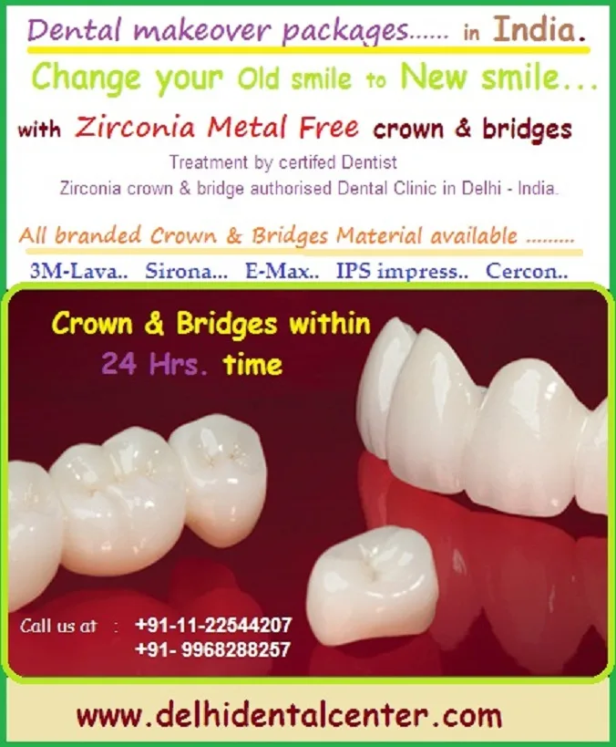 Zirconia Dental Crown Dentist in Delhi, at Delhi Dental Center; welcome people looking for Best Price Low Cost Cheap CAD CAM Metal free Porcelain Ceramic Zirconia Dental Crown Treatment Procedure by Zirconia Crown Specialist Dentist Prosthodontist in Delhi.